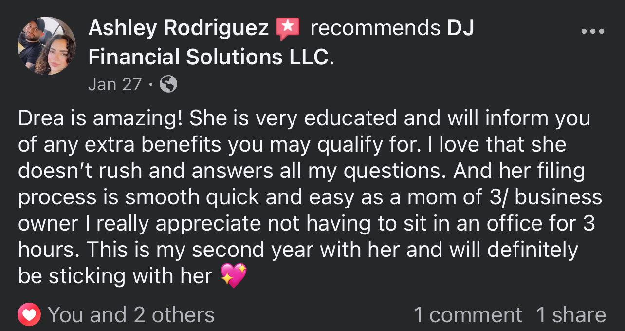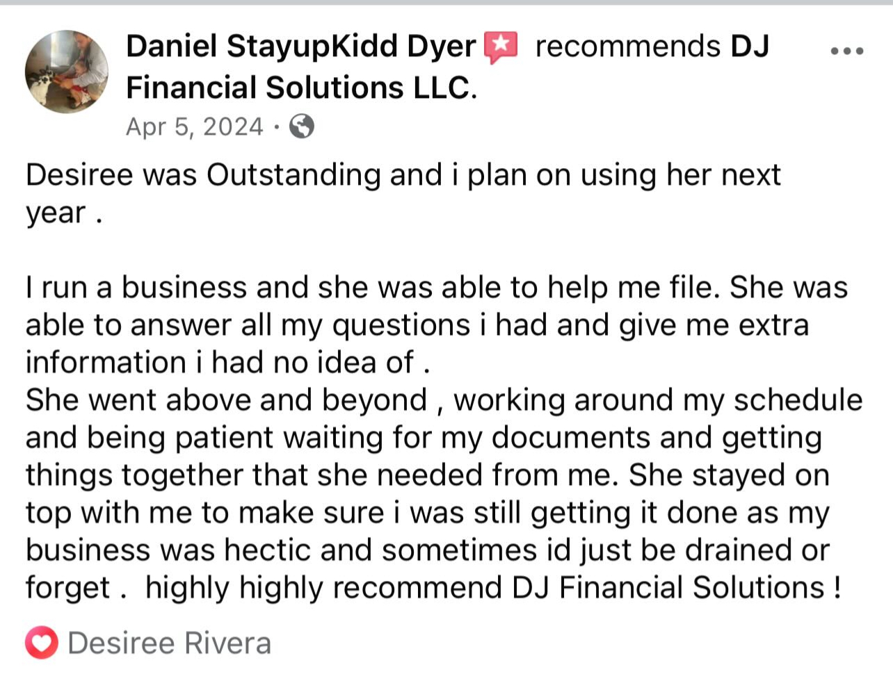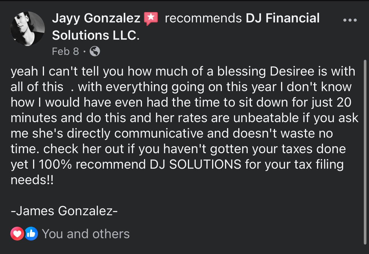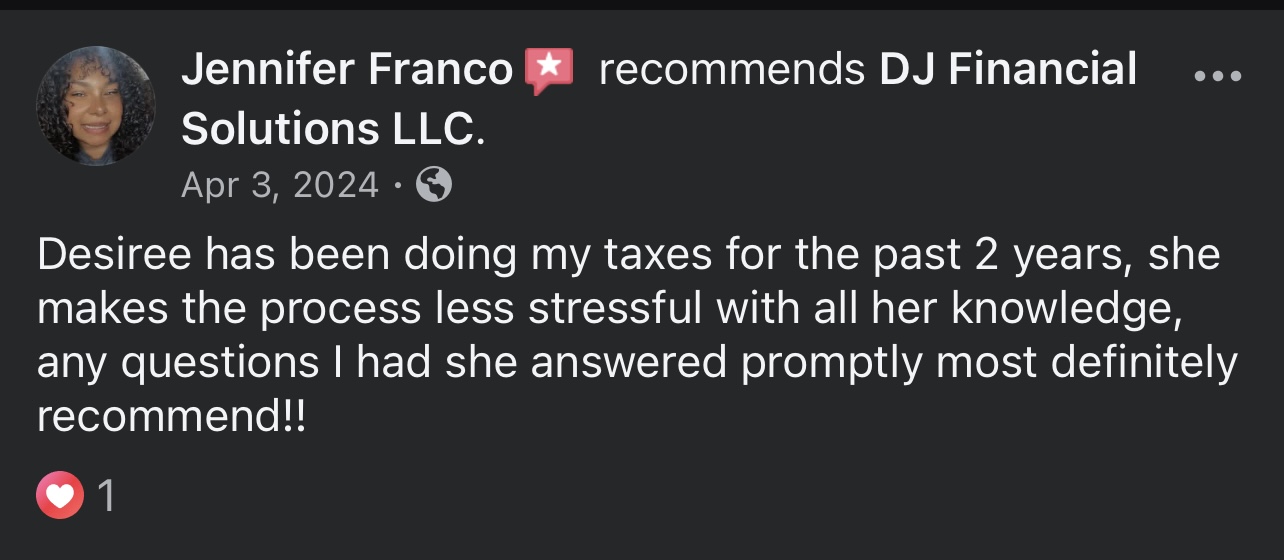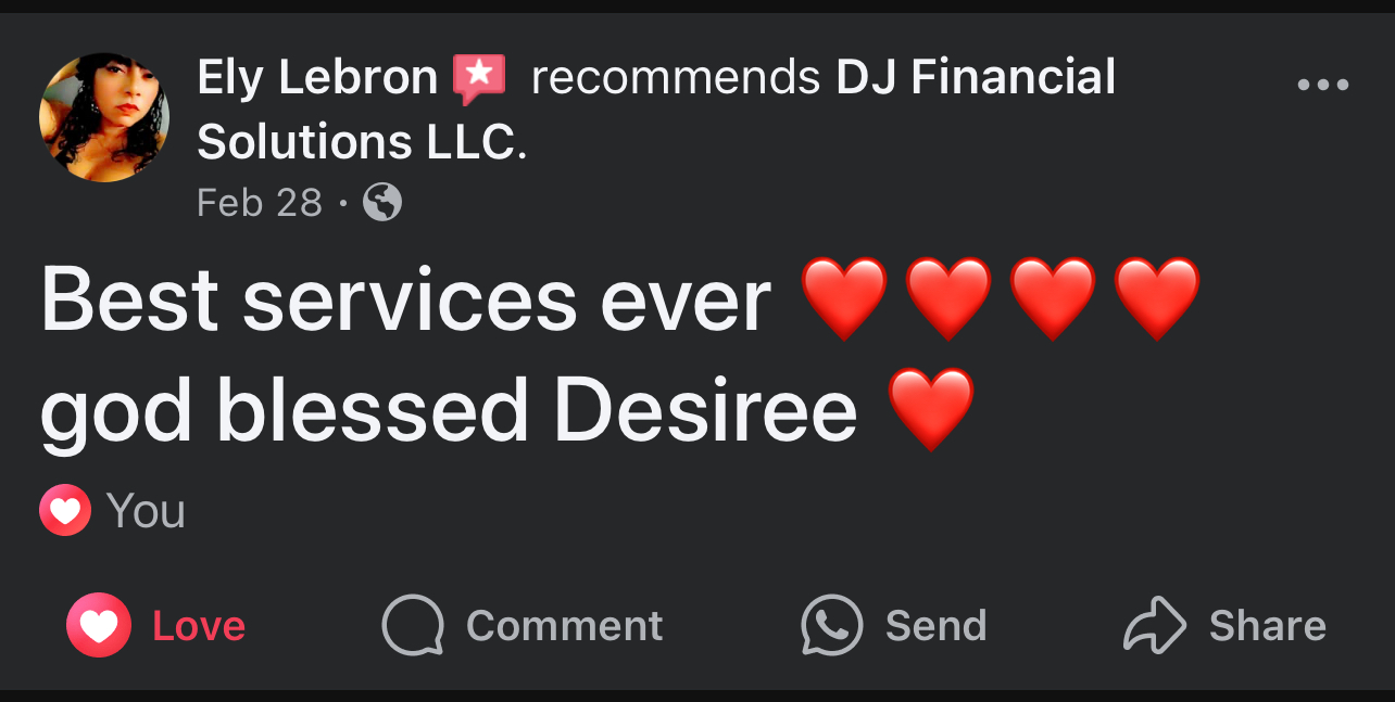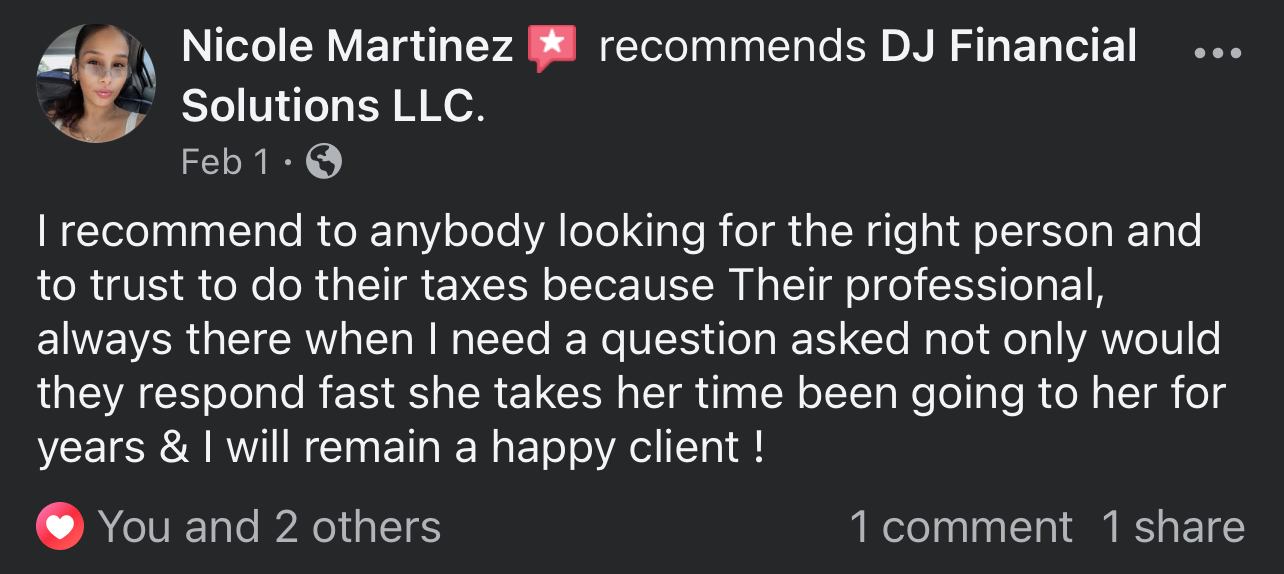 At D&J Financial Solutions, we value your feedback! Our review section is dedicated to showcasing experiences from our clients, helping others make informed decisions about our services. Whether it’s a positive testimonial or constructive feedback, your voice helps us grow and improve. Read what others are saying, and if you’ve worked with us, we’d love to hear from you too!