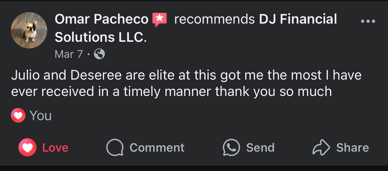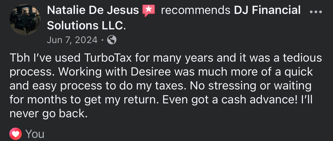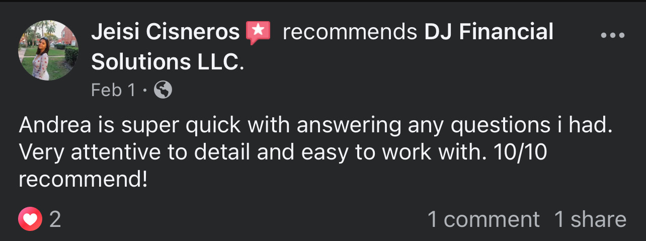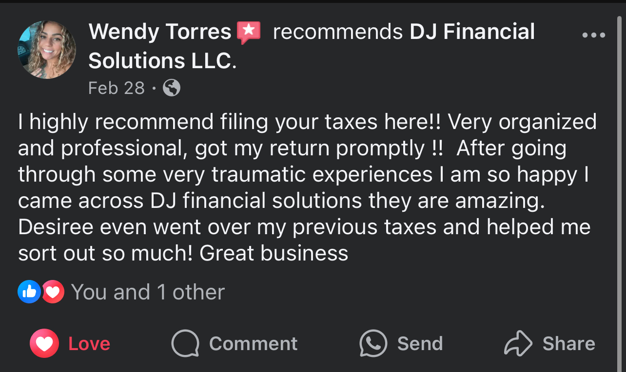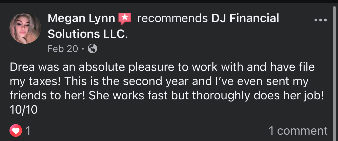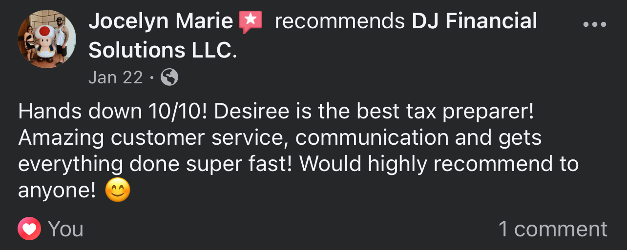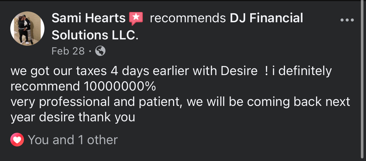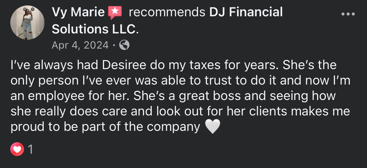 At D&J Financial Solutions, we value your feedback! Our review section is dedicated to showcasing experiences from our clients, helping others make informed decisions about our services. Whether it’s a positive testimonial or constructive feedback, your voice helps us grow and improve. Read what others are saying, and if you’ve worked with us, we’d love to hear from you too!